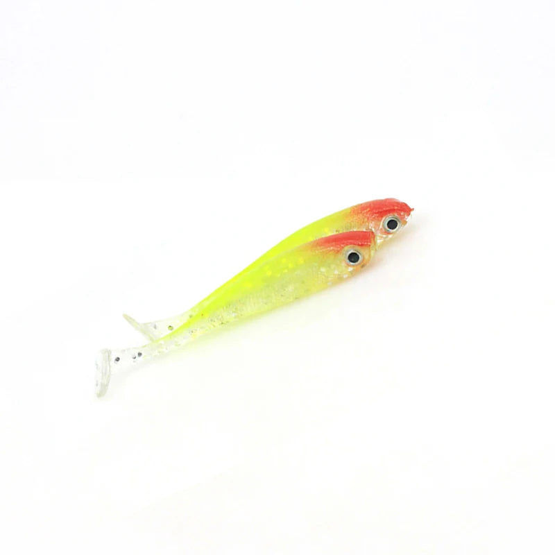 5 stuks per partij, zacht aas lokkers, 3D ogen, T-staart, 70 mm, 2,1 g, wobblers, wormvis, siliconen kunstmatig visaas, jigkop