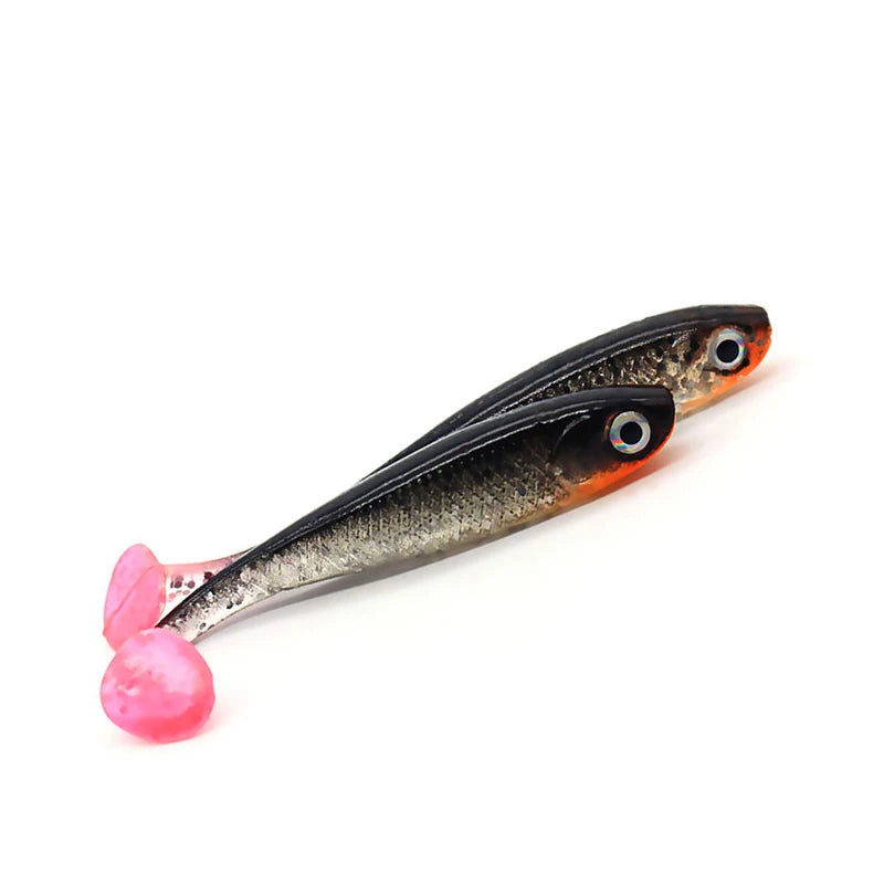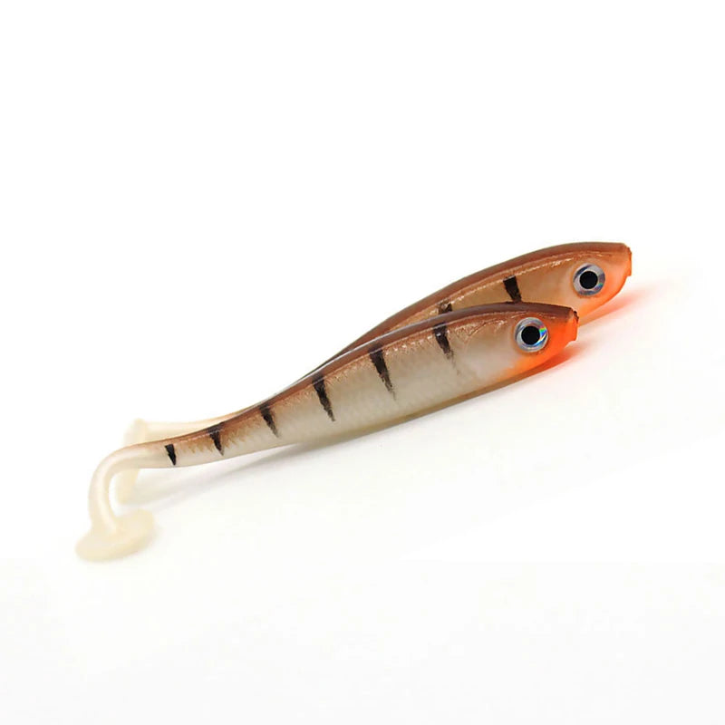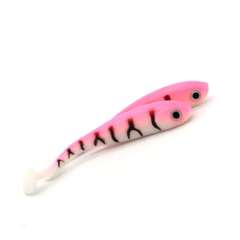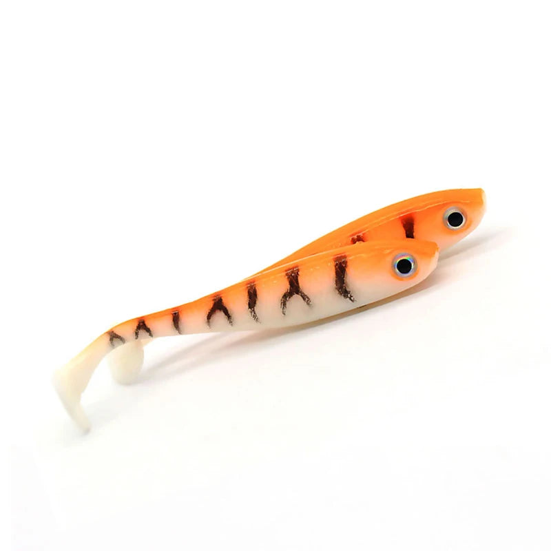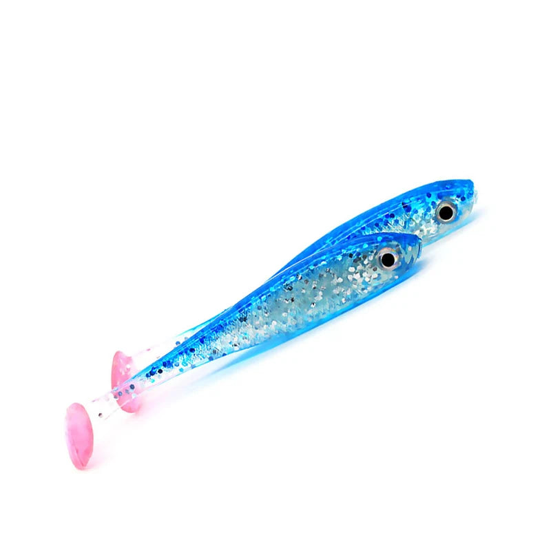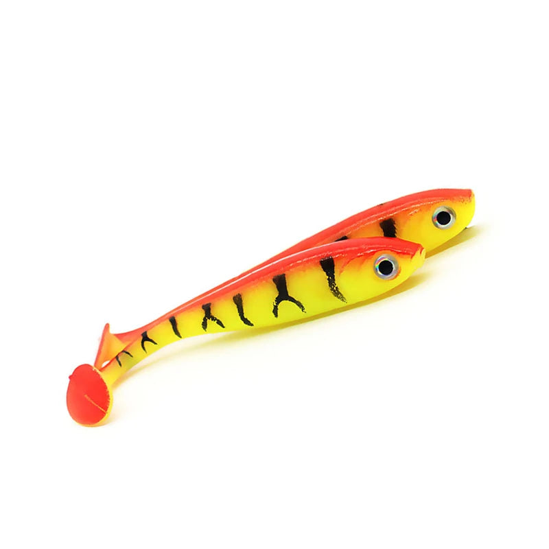 5 stuks per partij, zacht aas lokkers, 3D ogen, T-staart, 70 mm, 2,1 g, wobblers, wormvis, siliconen kunstmatig visaas, jigkop