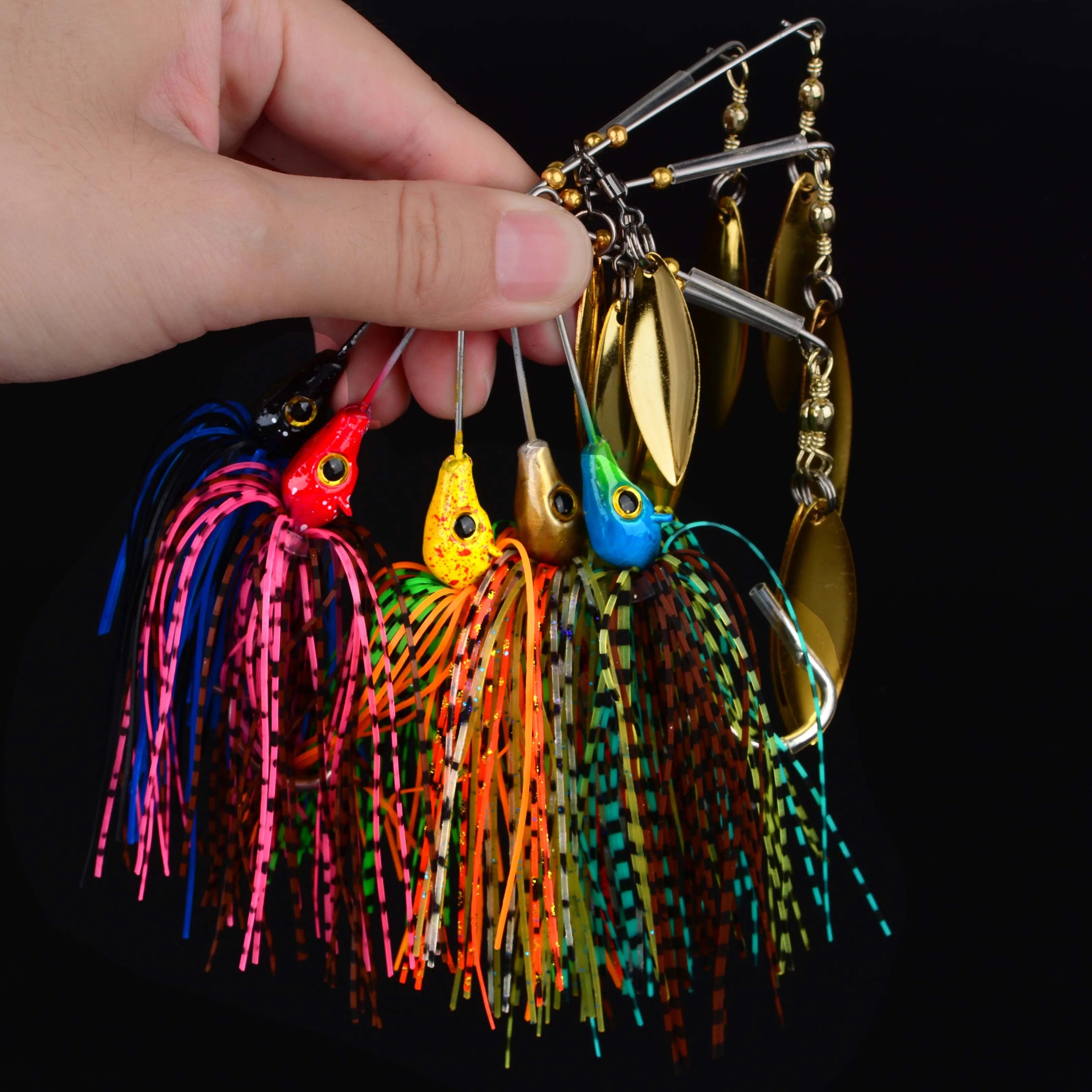 "5 stuks spinner vislokkers, bass crankbait, aasvisgerei, harde spinnerbait, snoek- en baarslokkers.